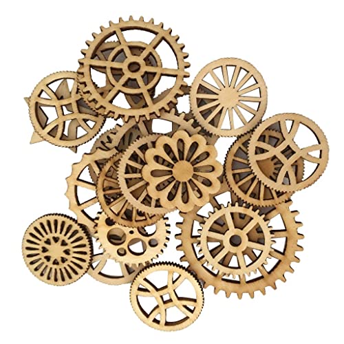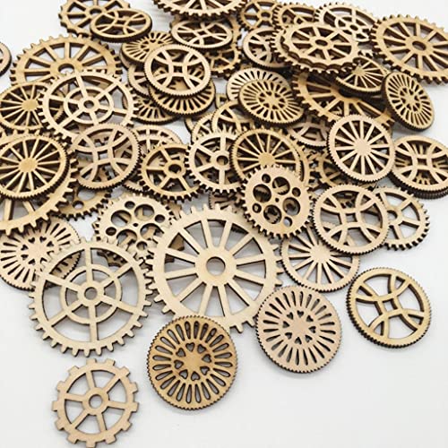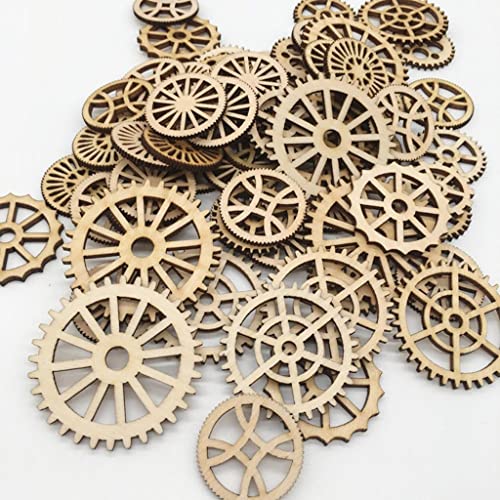 Perfk 50 Pezzi Incompiuto Ingranaggi Tag Ritaglio di Pezzi in Legno Abbellimenti