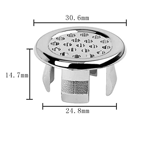 Materiale: il tappo del troppopieno del lavandino è realizzato in ABS di alta qualità, buona flessibilità e la superficie dell'anello del foro del lavandino è cromata, raffinata e resistente.