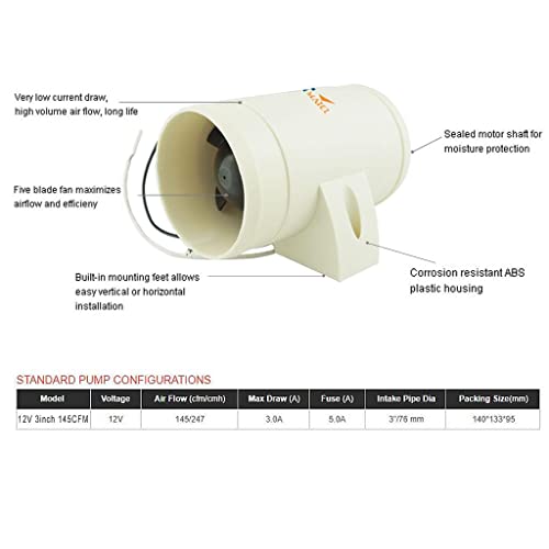 Perfk Ventilatore Estrattore d'Aria per Barche Barche Marittime Bianco 12V / 145 CFM