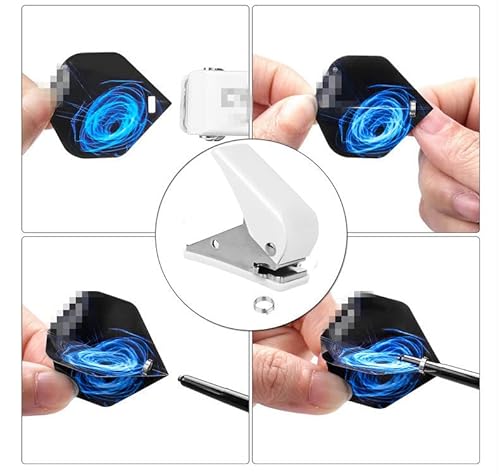 Perforatore per freccette, perforatore per freccette + 100 anelli di pecora/freccette, accessori per freccette in metallo, accessori per freccette, freccette (bianco)