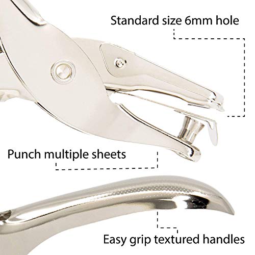 Perforatore a Foro Singolo,Metall Puncher Carta 1 Foro Bucatrice Perforatrice Palmare Pinze per per Carta Multipli Fogli in Acciaio Inossidabile 6MM Capacità 8 Fogli Argento