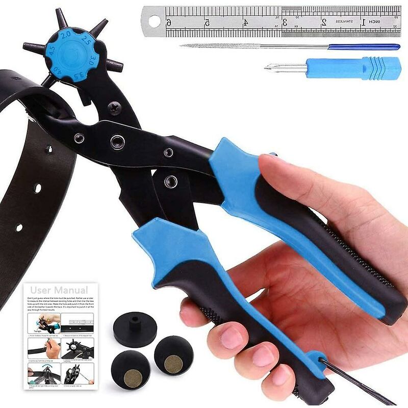 Robusto e durevole: il perforatore è realizzato in acciaio placcato che è di elevata durezza e durata. La superficie del metallo è trattata con un processo di verniciatura a spruzzo per prevenire l'ossidazione. Il timbro in ottone adotta il design dello spessore per garantire la sicurezza.Risparmio di manodopera e facile da usare: il punzone in pelle adotta il meccanismo a doppia leva, con lame affilate che salveranno notevolmente la tua forza. Era super facile da usare e richiedeva pochissima pressione per perforare le cinture abbastanza spesse, il foro è facile da perforare ed estremamente pulito e liscio.Cosa ottieni: la confezione include 1 perforatore per cintura, 1 quadrante di dimensioni del foro, 3 pezzi di ricambio gratuiti pastiglie in ottone, 1 cacciavite, 1 lima per fori, 1 righello, 1 manuale utente. Il righello può misurare con precisione il tuo pezzo e il cacciavite può sostituire le piastre di ricambio e le viti della cinghia. Multifunzionale: il perforatore ha 6 fori