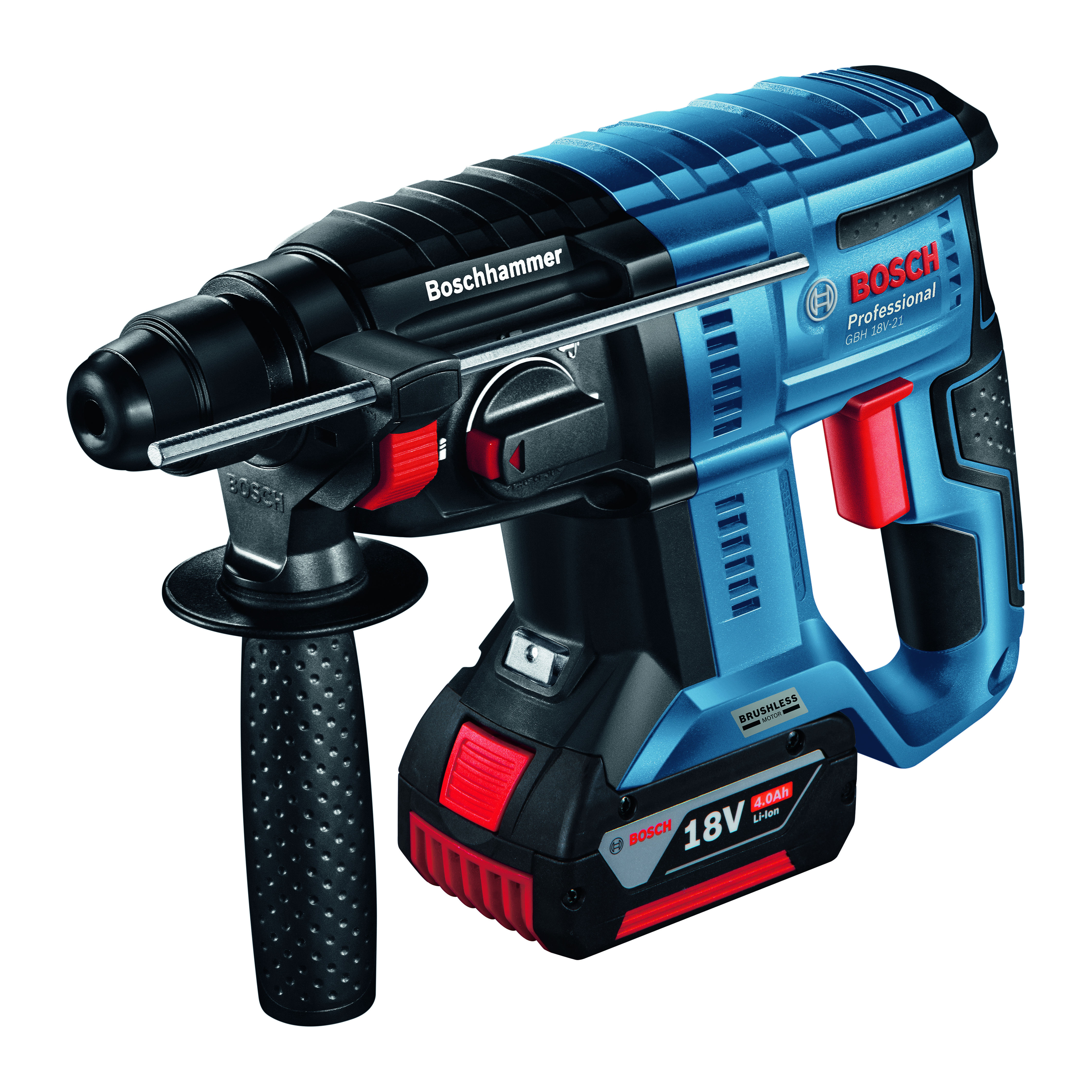 l'autonomia della batteria è superiore del 20% rispetto al modello precedente. Il GBH 18V-21 Professional offre in dotazione una minitorcia integrata a LED e le funzioni Rotation Control Clutch, Variable Speed e Vario-Lock. Il GBH 18V-21 è ideale per l'impiego su calcestruzzo, pietra e muratura ed è perfettamente compatibile con il sistema di aspirazione polvere GDE 16 plus. Grazie al peso di soli 2,4 kg, l'elettroutensile vanta un buon rapporto peso/prestazioni e risulta perfettamente utilizzabile anche per lavori di scalpellatura leggeri. Le batterie, caratterizzate da un eccellente sistema di gestione del calore, con maggiore durata e autonomia, contribuiscono all'efficienza del lavoro. Retrocompatibili fino al 2008, possono essere utilizzate con tutti gli utensili disponibili in commercio, purché della stessa categoria di tensione.. - Foratura - Foratura a percessione - Scalpellatura. Powerful impact system: maggiore potenza del singolo colpo pari a 2.0J.. Tre modalità operative: foratura, foratura con percussione, demolizione.. Motore brushless, per minori necessità di manutenzione, superiore autonomia per ciascuna carica della batteria, minori tempi di fermo e maggiore durevolezza.