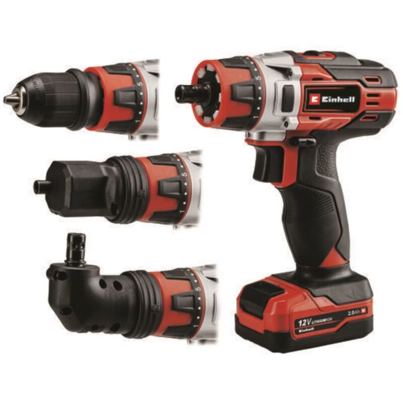 Il trapano a batteria Einhell 12V TE-CD 12/1 3X-LI è un assistente collaudato e robusto quando si avvita e la perforazione in legno e metallo in casa, officina e garage. Grazie alla tecnologia agli ioni di litio, il wireless della batteria è sempre pronto per l'uso - senza auto-scarica. La massima flessibilità quando si lavora consente il mandrino da trapano da 10 mm rimovibile. L'attacco angolare fornito consente alle viti e alla perforazione in luoghi che sarebbero troppo stretti per la vite della batteria. Allo stesso modo, è incluso un accessorio eccentrico, che può anche essere lavorato sui posti di bordo e negli angoli. Il cambio a due velocità conferisce alla forza di trapano e alle dinamiche, per cui l'elettronica della velocità consente il lavoro materiale e applicazione-friendly in ogni situazione. Per portare la luce in spazi di lavoro scuri, il trapano della batteria è dotato di un'illuminazione a LED. Con un design ergonomico e la comprovata softgrip, è stata anche posata