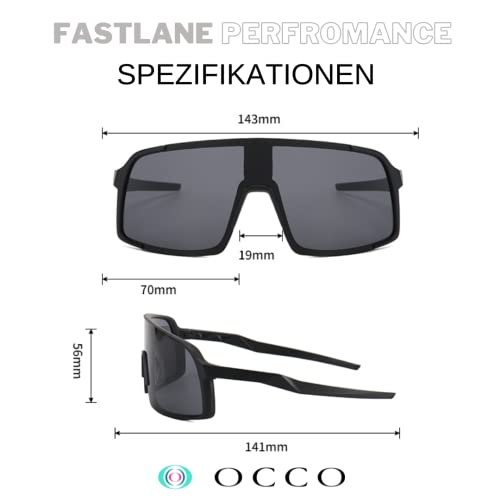 OCCO Performance Fastlane - Occhiali da ciclismo per uomini e donne, Colore: rosso