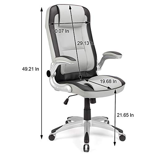 Perfur Casa Racing Chair Sedia da ufficio Sedia da scrivania Sedia da scrivania Sedia da gioco Sedia direzionale Sedia girevole PU, grigio