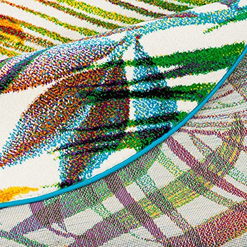 Pergamon Faro - Tappeto di Design - Tropicale Ramoscelli Colorati - Rotondo - 3 Dimensioni