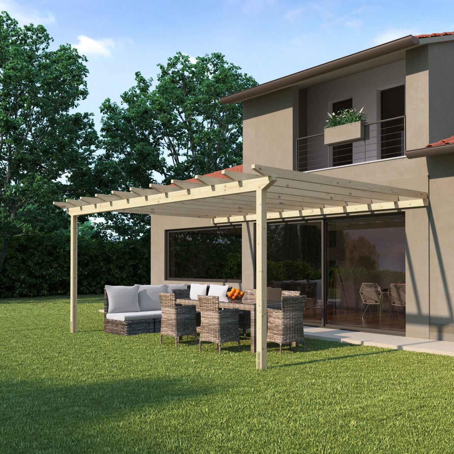 Struttura in legno di abete. Ideale per creare un ambiente riparato attiguo alla casa