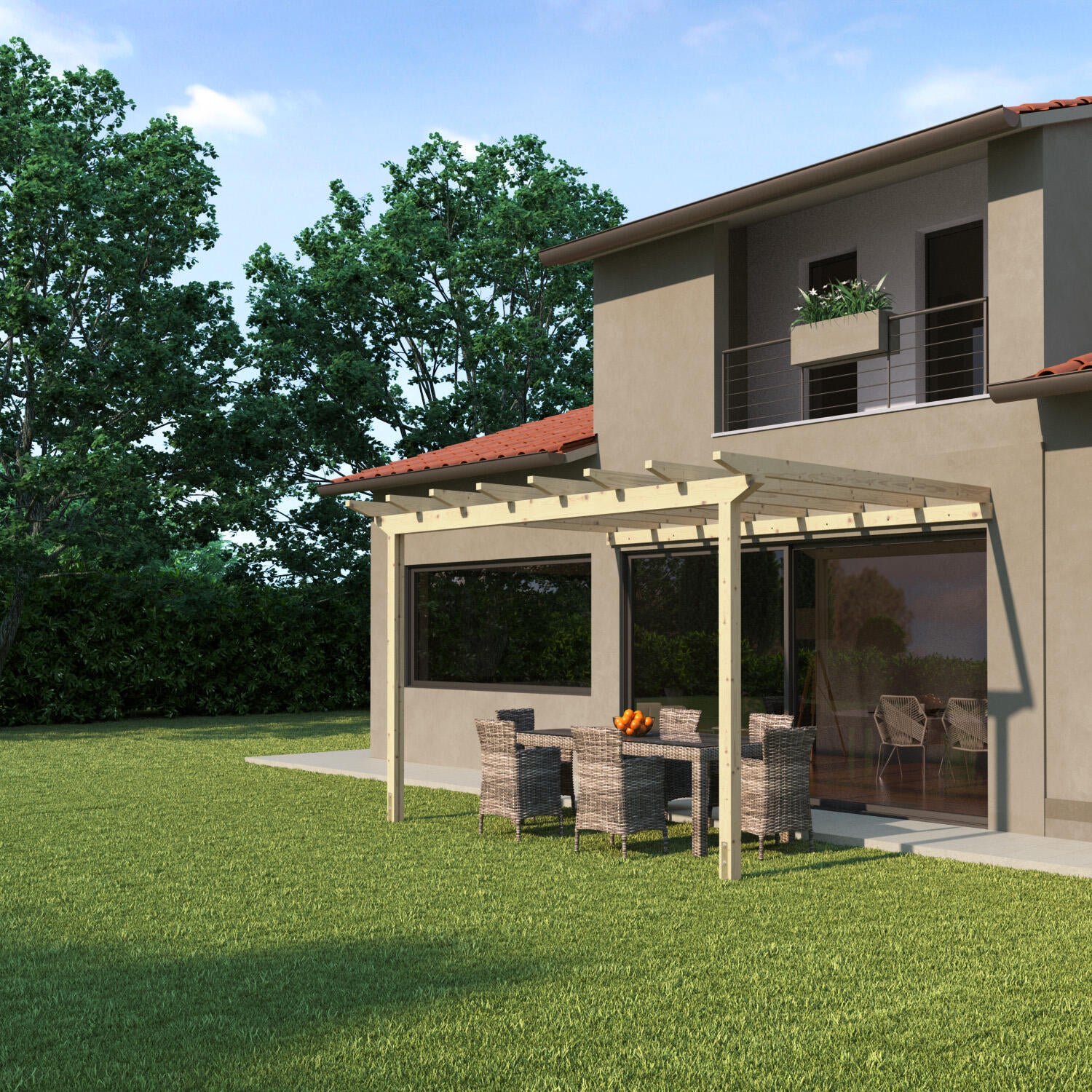 Struttura in legno di abete. Ideale per creare un ambiente riparato attiguo alla casa
