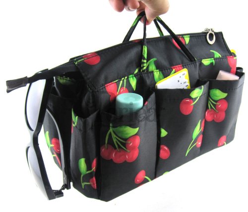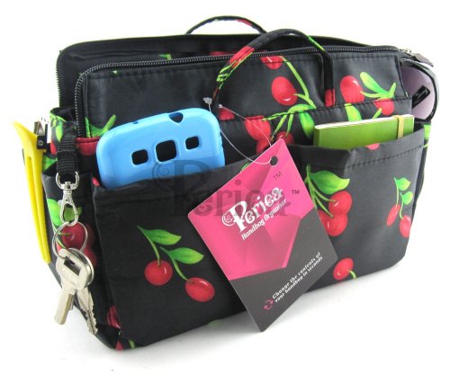 Periea ‘Keriea' Inserto organizer per borsa - Ideale per la maggior parte delle borse di medie dimensioni - 12 tasche (Nero con ciliegie)