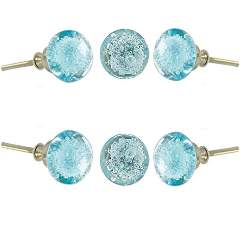 Perilla Home Set di 6 pomelli in cristallo per armadietti e cassetti, pomelli decorativi in vetro a bolle d'aria per casa, cucina, armadietti, porte, comò, armadi e cassetti (azzurro)