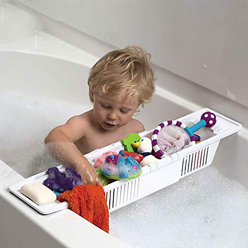 PeriwinkLuQ - Vassoio portaoggetti universale per vasca da bagno, regolabile, per accessori da bagno