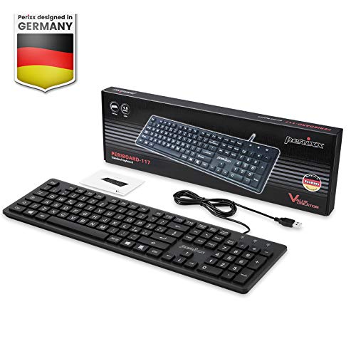 Perixx PERIBOARD-117 Tastiera USB cablata e tasti Chiclet a carattere di stampa grande, nera, Layout italiano