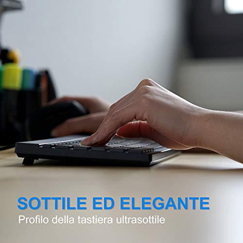 DESIGN COMPATTO: Mini tastiera senza l'area del tastierino numerico per avere più spazio sulla scrivania e meno distanza dalla tastiera al mouse