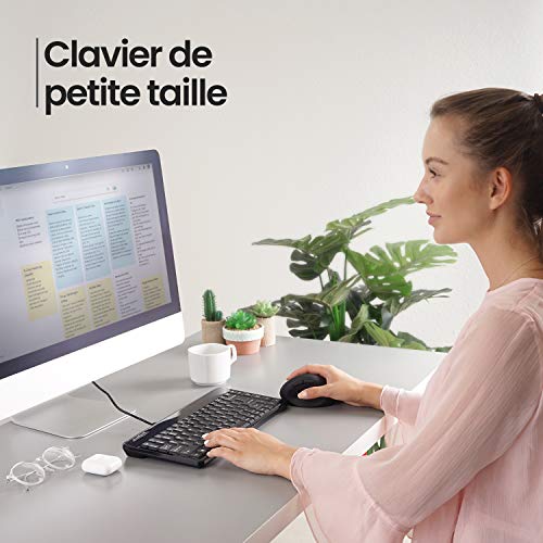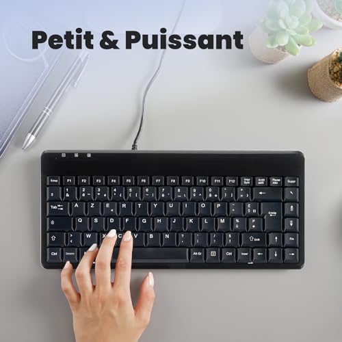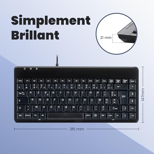 Perixx Periboard-409 - Mini tastiera cablata, USB, 315 x 147 x 21 mm, AZERTY, colore: nero (layout francese) nero Nero Connexion USB