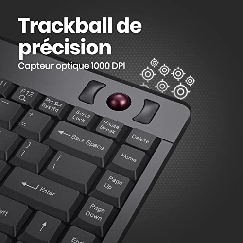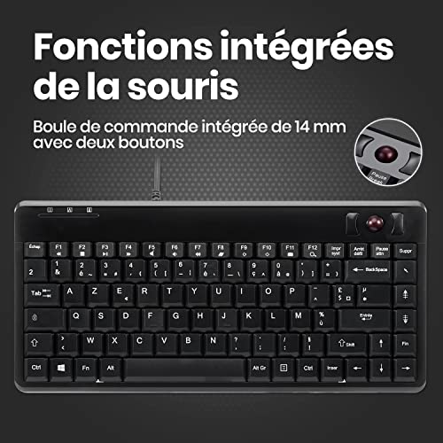 Perixx PERIBOARD-505H PLUS - Tastiera con trackball, hub 2 USB 2.0, 315 x 147 x 21 mm, trackball 14 mm, cavo 1,8 m, AZERTY