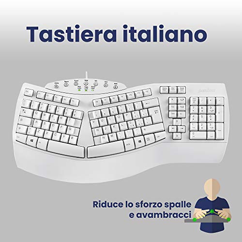Tastiera ergonomica cablata con layout italiano. Le dimensioni ridotte e il design ergonomico della divisione ti guidano verso il gesto di digitazione più rilassante