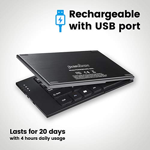 Perixx PERIBOARD-805L, Tastiera bluetooth pieghevole - 160x96x17mm - Magnetic Foldable Design - Compatibile con Nexus - Galaxy Tab - Note - Nero - Layout QWERTY English
