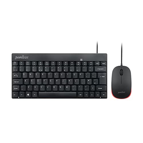 Mini set cablato: Periduo-212 è un set compatto di tastiera e mouse viene fornito con una tastiera a 80 tasti (291 x 138 x 19 mm), ed è fornito con un mouse ottico 1000 DPI (104 x 62 x 34 mm).
