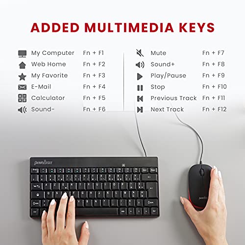Perixx PERIDUO-212 - Mini tastiera e mouse cablati con 12 tasti multimediali, colore: Nero