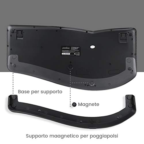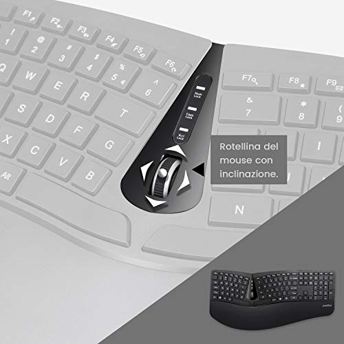 Perixx Periduo-605, Wireless Tastiera Ergonomica Split e Mouse Verticale, QWERTY Italiano, Tasti silenziosi, Tastiera con Rotella di Scorrimento e Poggiapolsi, per la sindrome del tunnel carpale