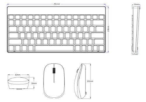 Mini combinazione wireless: Periduo-712 è un set di tastiera e mouse compatto con tastiera a 80 tasti (29 x 13 x 2 cm) ed è dotato di un mouse ottico da 1000 dpi (10,6 x 6,1 x 4,3 cm). Tecnologia wireless a 2,4 GHz con portata fino a 10 metri.