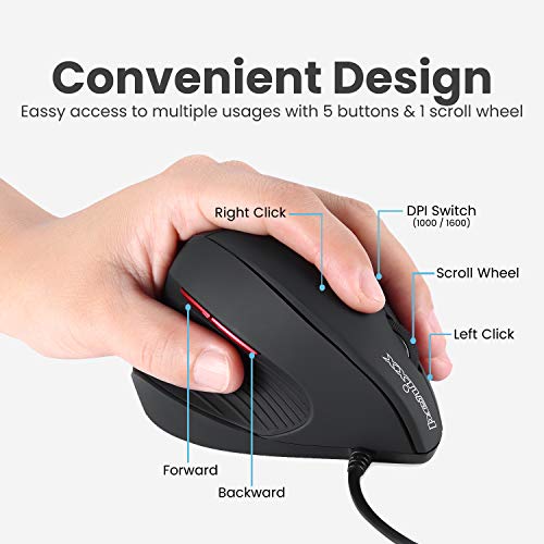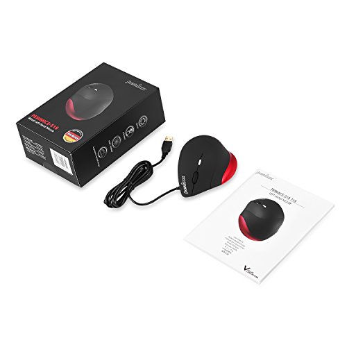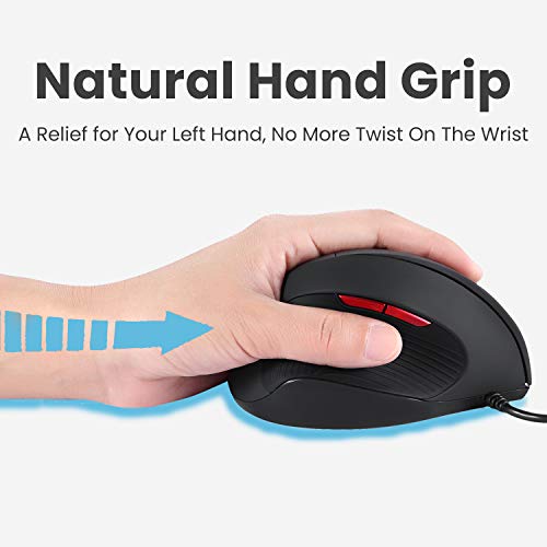 Perixx PERIMICE-518 - Mouse per Mancini, Design Ergonomico, Taglia Larga, con Filo, 5 Tasti, 1000/1600 DPI