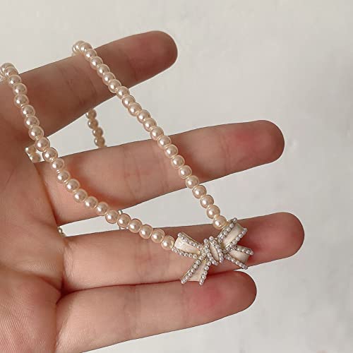 Perla in rilievo Buttterfly Bow Choker Collana corta da donna per donne e ragazze