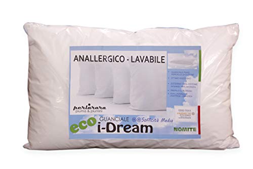 PERLARARA - Cuscino Letto Eco iDream, Cuscino Antiacaro Bianco 50x80 cm, Guanciale Letto Alto in Fresco Percalle di Cotone Anallergico