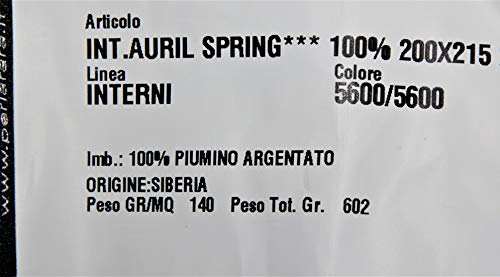 COMPOSIZIONE PIUMINI PIAZZA E MEZZA 4 STAGIONI AURIL - Tutti i piumini Auril sono in 100% piumino d'oca silver Siberiano, la parte più pregiata dell'oca (Certificato NOMITE) - FILLING POWER 720 cuin - PESO: 602 + 387 gr
