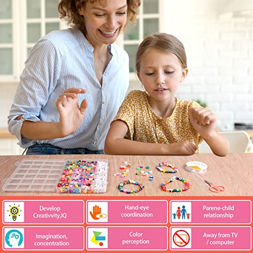 Perle di Argilla Polimerica, Perline Kit Creazione Gioielli Fai da Te per Bambini Bracciali Perline Fatte a Mano in Argilla Polimerica per Braccialetti, Collane, Creazione di Gioielli (750 Pezzi)