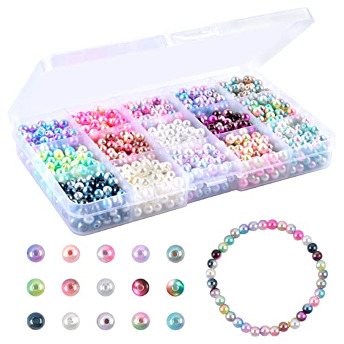1200 Pzi 6mm Perle Perline Perle Rotonda di Imitazione Perla Colorate Artificiali Perle Sfuse Perle Imitate di Plastica con Foro per Gioielli Collana Braccialetto Artigianale Orecchini Decorazioni