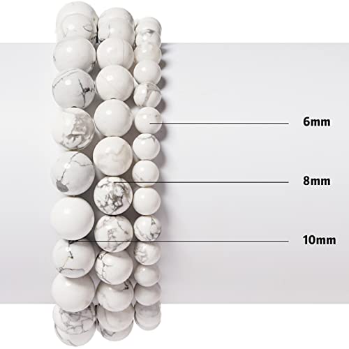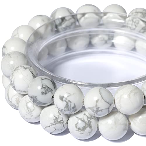 Perle di pietra naturale da 10 mm, perline rotonde sciolte, pietre preziose per la creazione di gioielli con cordino elastico di cristallo (bianco Howlite, 35 pezzi)