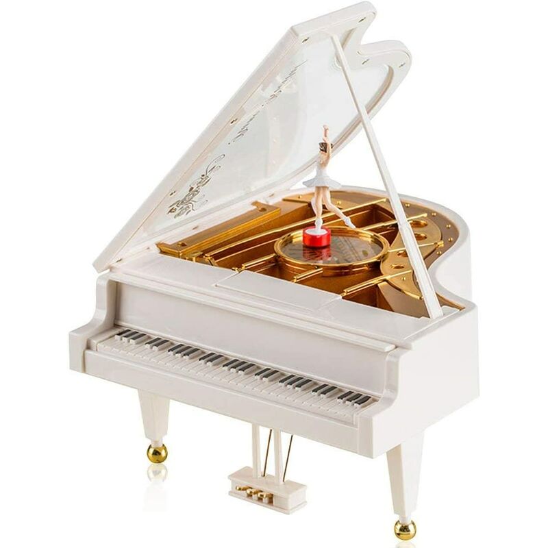 Superficie del pianoforte con motivo colorato della pista da ballo, lavorazione squisita, generazione eccellente. La ragazza con bellissime melodie musicali nella piattaforma della copertina del pianoforte è libera di girare, cavalcare e ballare di buon umore. Movimento sonoro melodioso. Carillon meccanico: non sono necessarie batterie. Avvolgi delicatamente la chiave di metallo inferiore in senso orario, apri la tastiera, il ballerino ruoterà lentamente e sentirai la musica soft. Un'ottima decorazione nella tua camera da letto, soggiorno. Questo simpatico carillon meccanico di ballerina classica sul pianoforte è unico e alla moda. Il ballerino si rivolgerà alla musica. È un regalo perfetto per un compleanno, Natale o San Valentino. Materiale: poliresina, dimensioni: 16,2 x 10,5 x 17 cm, con 18 note ritmiche. Mettilo sulla scrivania o sul letto, ogni volta che lo vedi, ti mette di buon umore.