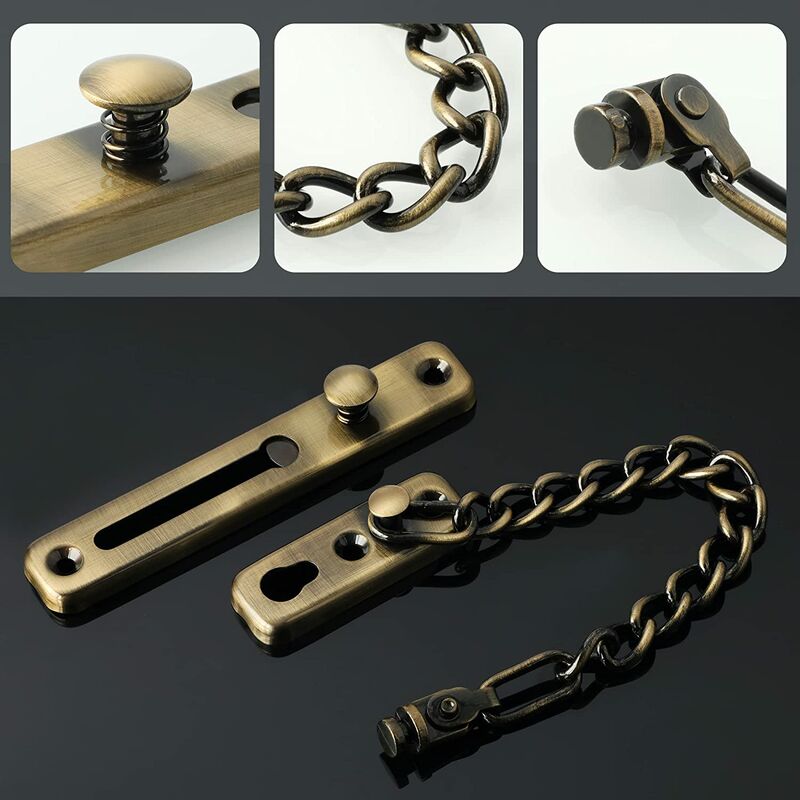 lunghezza della catena: 20 cm. 【Robusto e durevole】 La catena della serratura della camera è realizzata in acciaio inossidabile di alta qualità, antiruggine, anticorrosione e impermeabile. Catene più spesse possono resistere a tensioni elevate. 【AMPIA APPLICAZIONE】 La cerniera della porta può essere adatta per porte in legno o metallo di diverse porte. Può essere posizionato sopra o accanto al pannello della porta. Può essere utilizzato in case, hotel, appartamenti, case in affitto, ecc. 【Facile da installare】 Il pacchetto serratura include tutti gli accessori necessari. Il metodo di installazione della vite del trapano può impedire efficacemente a estranei di entrare in casa. Promemoria: a causa della fotosensibilità delle impostazioni dello sfondo e del monitor, potrebbe esserci qualche differenza tra l'immagine e la cosa reale e il il colore finale dipende dal prodotto reale.