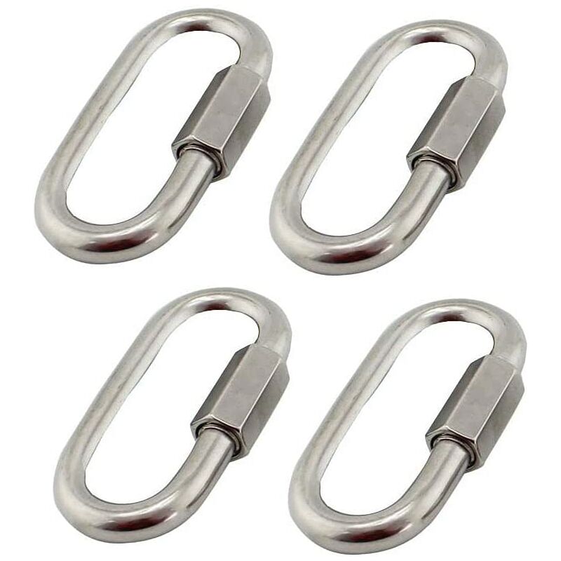 Materiale: queste fibbie a forma di D sono realizzate in acciaio inossidabile 304, che è forte, durevole, antiruggine e resistente alla corrosione. Dimensioni: 60 x 30 mm. Limite di carico di lavoro: 120 kg, spessore 6 mm. La confezione include: 4 ganci a scatto rapido M6. Ruota il filo in senso orario per aprire e in senso antiorario per chiudere. Maglie rapide per catena/cavo di alta qualità, cavo connessioni;