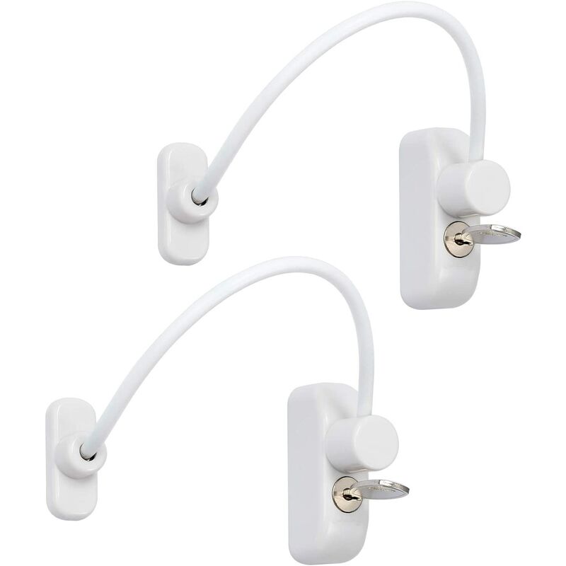 Sicurezza del bambino: Cavo di blocco per finestra con serratura da 2 pezzi, che consente la ventilazione senza compromettere la sicurezza dei bambini. Ideale per applicazioni domestiche, pubbliche e commerciali. Alta qualità: realizzato in PVC, legno, alluminio e metallo. Facile da installare: può essere facilmente installato sulle finestre con quattro viti . Limita la distanza che una finestra può aprire. Può essere rimosso da un'estremità utilizzando la chiave, le finestre possono essere aperte completamente. Chiavi fornite: possono essere bloccate e sbloccate in pochi secondi. Adatto a tutti i materiali: adatto alla maggior parte tipi di finestre e porte piccole.