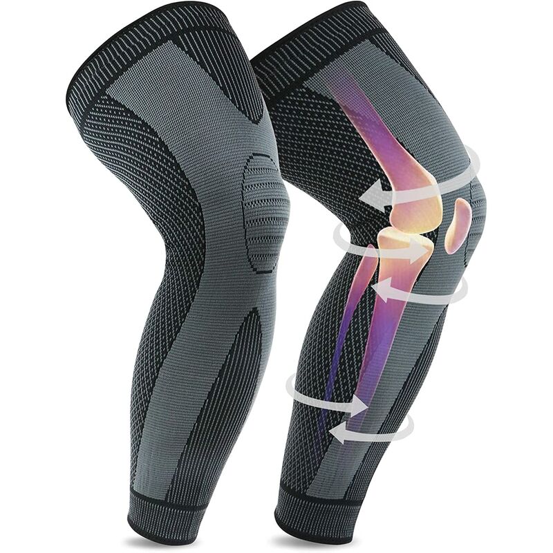 SUPPORTO E PROTEZIONE PERFETTI - : Le ginocchiere a compressione, con il loro eccellente design 3D allungato, offrono una perfetta vestibilità a 360° per una protezione completa e calore dal polpaccio alla coscia. Con la nostra manica, puoi prevenire efficacemente gli infortuni causati dall'esercizio o da qualsiasi attività che eserciti pressione sulle ginocchia e sui muscoli del polpaccio. Aumenta istantaneamente le tue prestazioni e la tua sicurezza. 【POTENTI EFFETTI】: La vera ginocchiera elastica a compressione graduata può favorire la circolazione sanguigna e il flusso di ossigeno per alleviare il dolore al ginocchio e al polpaccio. Sono ottimi per artrite, tendinite, gonfiore, rotture del menisco, stiramenti, distorsioni, crampi al polpaccio e recupero post-operatorio. 【DESIGN PREMIUM】: Le nostre ginocchiere a compressione sono progettate con una doppia fascia in silicone antiscivolo sulla parte superiore, che può tenere le maniche in posizione senza scivolare verso il basso