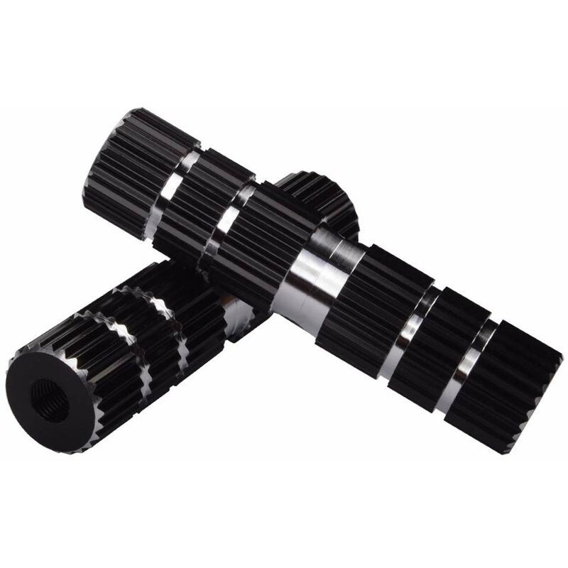 Adatto per asse anteriore e posteriore. Forma cilindrica scolpita con scanalature antiscivolo. Uno strumento utile per portare un'altra persona sulla bici. Fix sull'asse per eseguire acrobazie sulla bici. Buona protezione per il deragliatore.