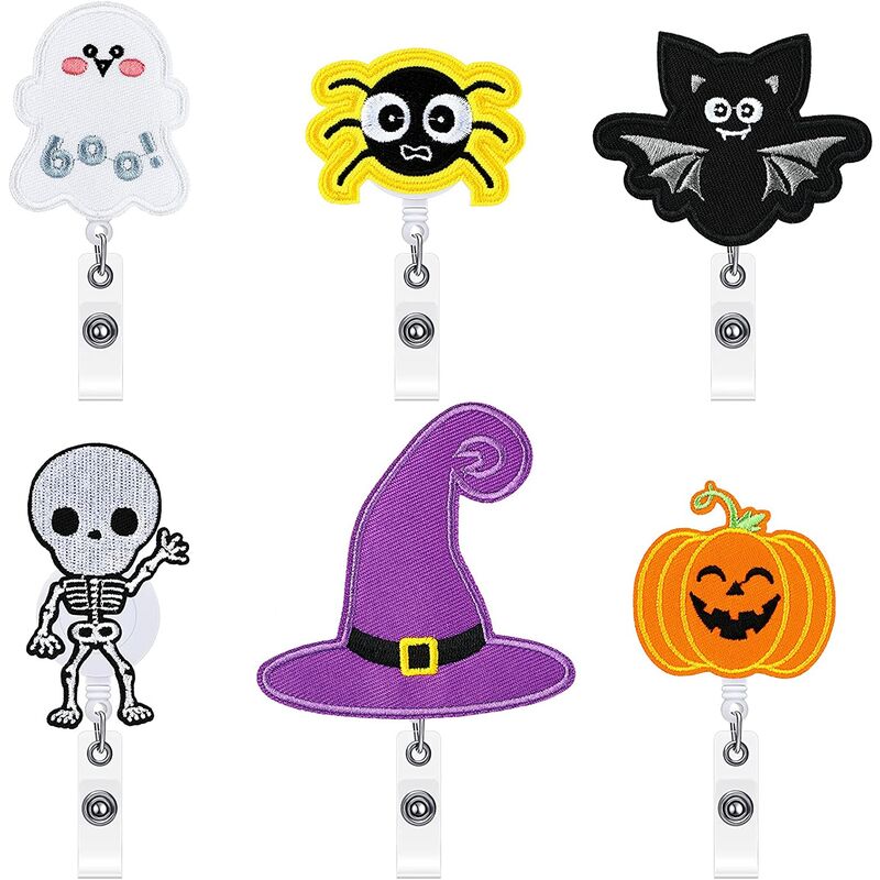 Cosa puoi ottenere: il pacchetto contiene 6 bobine di badge retrattili in feltro di Halloween con diversi design;