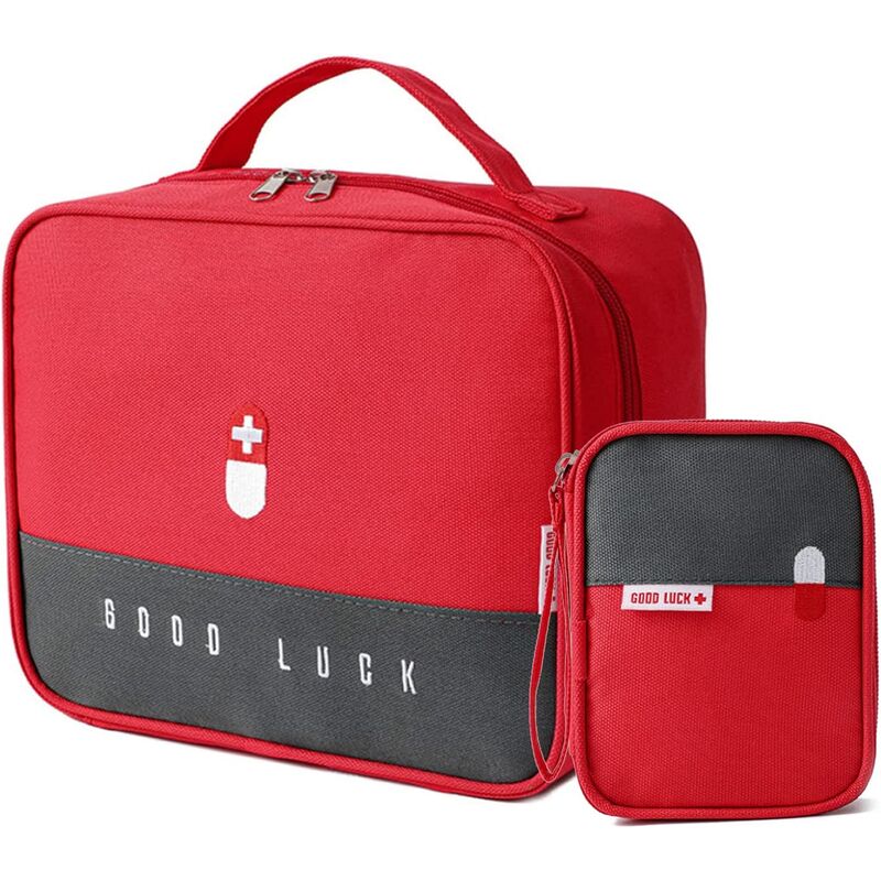 Materiale impermeabile - Il kit di pronto soccorso è realizzato in tessuto oxford di alta qualità, traspirante, impermeabile, resistente all'usura e durevole. 【Taglia】Grande: 25 x 20 x 13,5 cm, Piccolo: 11 x 14 x 2 cm, leggero, di piccole dimensioni, grande capacità e ampio spazio. 【Facoltativo】 Abbiamo i colori rosso e grigio tra cui scegliere, 2 kit di pronto soccorso vuoti, con dimensioni e maniglie per un facile estrazione e trasporto. 【Design a doppio strato】Questo kit di pronto soccorso vuoto ha un design a doppio strato e lo strato superiore può posizionare piccoli oggetti come bastoncini di cotone, termometri, ecc., Il che aumenta lo spazio di archiviazione spazio ed è facile da trovare. (Il kit di pronto soccorso non contiene medicinali) 【Multiuso】 Questo kit di pronto soccorso è perfetto per tutte le attività all'aperto, come famiglia, campeggio, viaggi, scuola all'aperto, sport, ecc.