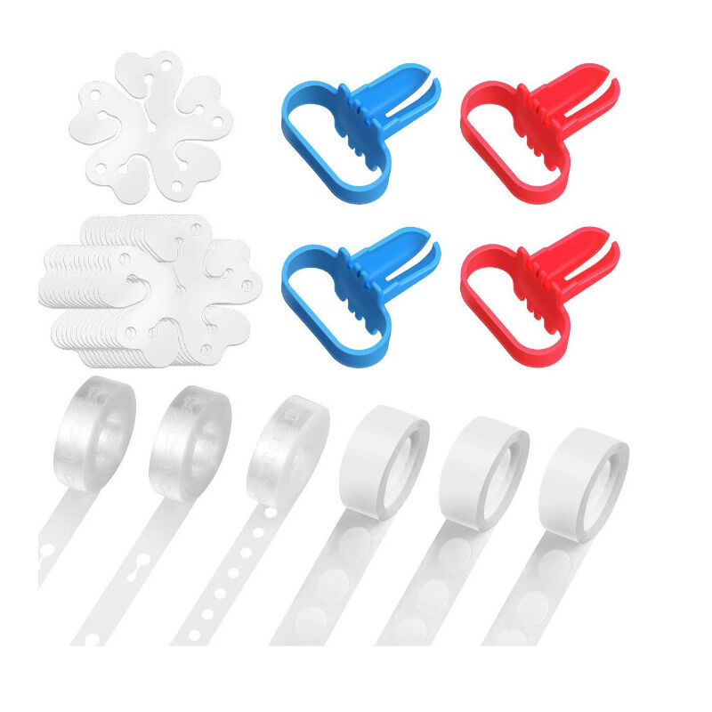 Il set include: 2 rotoli di catena per palloncini a doppio foro da 5 m, 1 rotolo di catena per palloncini a foro singolo da 5 m, 3 rotoli di colla per palloncini, 20 nuovi fermagli per piume di palloncini. Facile da montare: le catene per palloncini ti aiutano a montare rapidamente palloncini e puoi realizzare qualsiasi forma di ghirlanda di palloncini. Robusta e sicura: le catene di palloncini possono contenere molti palloncini e possono essere utilizzate più e più volte. Catena a doppio foro - Design a doppio foro rende più facile legare i palloncini rispetto al foro singolo. È adatto per kit di archi a palloncino di diverse dimensioni e forme. Istruzioni - Gonfia il palloncino, passalo attraverso il foro grande e spostalo nel foro piccolo per fissarlo.