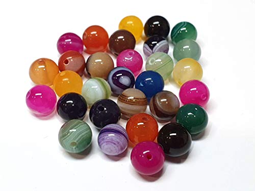 Perle striate di agata naturale, 8 mm, 6 mm, 4 mm, lucidate e opache, sferiche, per la realizzazione di gioielli, collane e bracciali, colori assortiti (8 mm, 15 pezzi, colori misti lucidi)