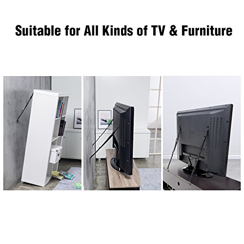 Perlegear Cinghie antiribaltamento per TV e mobili - 2 pezzi (ciascuna da 20-92 cm) Cinghie TV resistenti che proteggono i vostri bambini, Inclusi hardware di montaggio, Nero