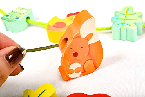 Perle giardino cavetti, contiene 18 perle grandi assortiti in legno stampato su il tema del giardino e 2 lacci in cotone per collane fantasia della grè, la sua immaginazione. Ideale per attività lacci e per lo sviluppo delle feinmotorik. a partire dai 2 anni.