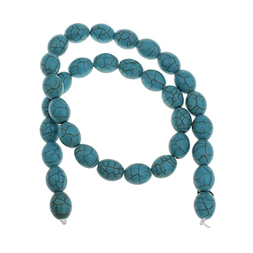Perlin - perle di pietra semipreziosa turchese 12 mm ovale turchese blu 1 filo per gioielli fai da te G589