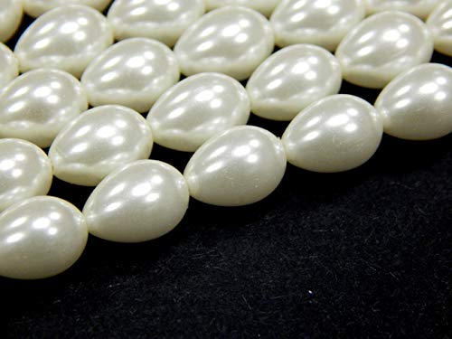 Perlin - Perline di vetro cerato di perle coltivate imitate perle di vetro cerato bianco AAA a goccia, 9 x 7 mm, 40 pezzi, con foro per infilare la decorazione da tavolo