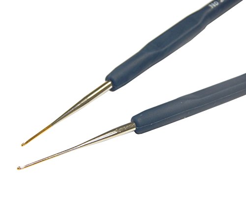 Perlin YABALI - Uncinetto con punta dorata e manico elastico, 0,55 mm, in acciaio INOX n. 21