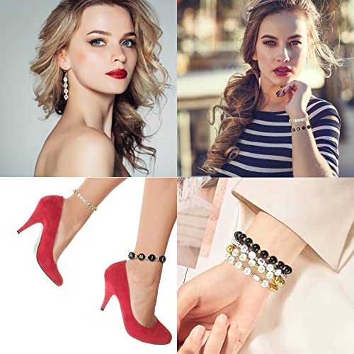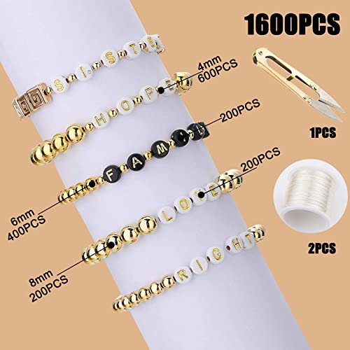 Contenuto della confezione: 600 perline dorate con un diametro di 4 mm, 200 perline con lettere nere, 200 perline bianche con lettere, 400 perline dorate con un diametro di 6 mm, 200 perline dorate con un diametro di 8 mm, 2 rotoli di filo di seta, 1 paio di forbici. Totale di 1600 perline per soddisfare le vostre esigenze.