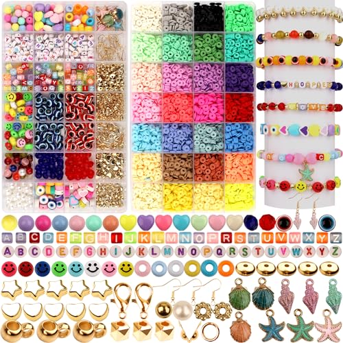 6000+Pz. Perline di argilla polimerica Perline di sorriso Perline di cristallo Perline di lettere per la creazione di gioielli per la creazione di braccialetti Kit, 2 scatole